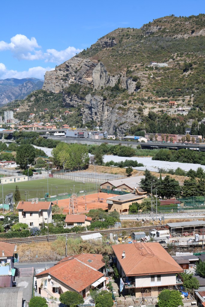Ventimiglia (IM): in alto la Frazione Roverino, poi, il fiume Roia e la zona Peglia